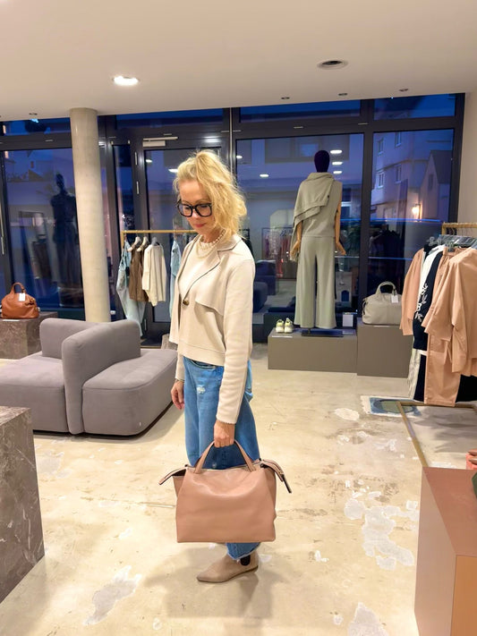Elegante Leder-Handtasche in nude – Made in Italy