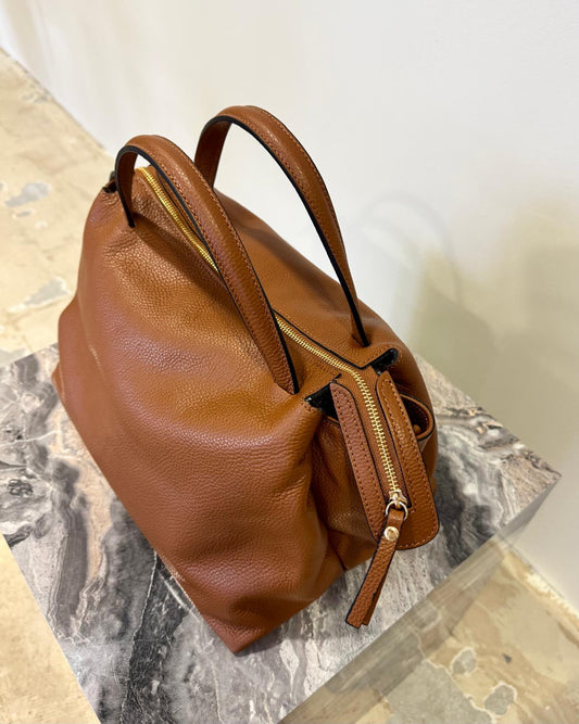 Elegante Leder-Handtasche in cognac – Made in Italy